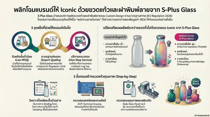 สำหรับการออกแบบขวดใหม่ที่จะสะท้อนภาพลักษณ์ของคุณได้อย่างเป็นเอกลักษณ์ ทีมงานของ Splusglass จะอยู่เคียงข้างคุณในทุกขั้นตอน: